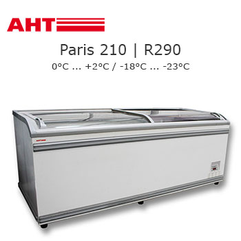 Los arcones frigoríficos y congeladores de la marca AHT son económicos y representan una nueva generación de aparatos de refrigeración. Estos arcones están equipados con iluminación interior integrada y tapas correderas de cristal panorámico curvado.